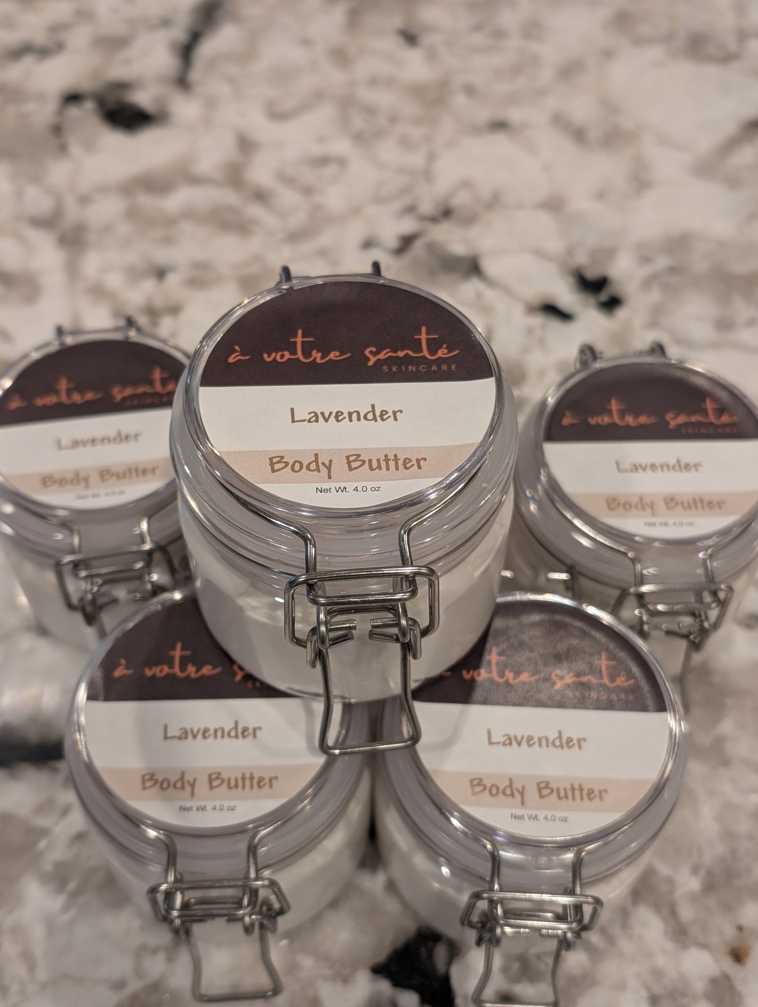 Hand-whipped with Lavender Butter, Shea Butter, Orchid Extract, Rose Extract and Lavender Essential Oil.